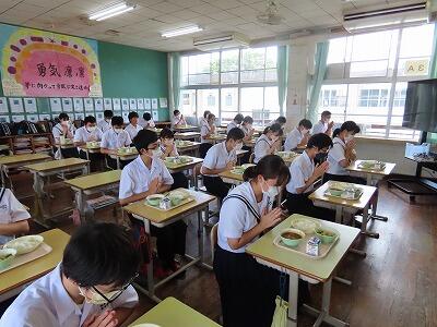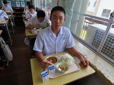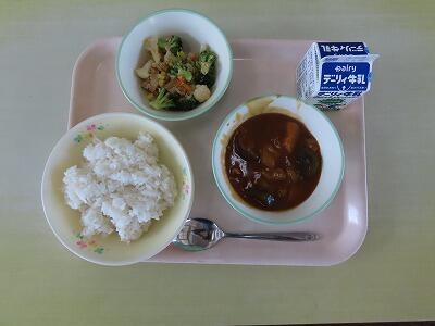 今日の給食は、夏野菜カレー、ブロッコリーサラダ、牛乳です。3年生の教室をのぞいてみると、何回もおかわりをしておいしそうに食べる姿がたくさん見られました。たっぷり食べて、暑い夏を乗り切りましょう。