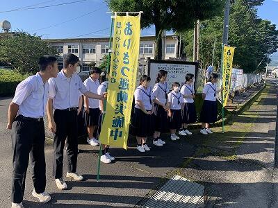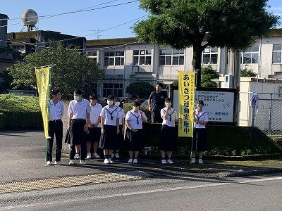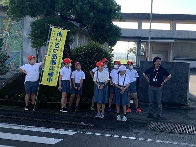 本日、2回目の小中合同あいさつ運動を行いました。梅雨明けを感じさせるような暑さの中、子どもたちが元気よく登校してきます。あいさつ運動の児童・生徒の声に励まされて大きな声であいさつを返す姿が見られました。信号待ちをされている地域の皆様方も温かく見守ってくださいます。地域の皆様方、今後も子どもたちを温かく見守っていただけるとありがたいです。