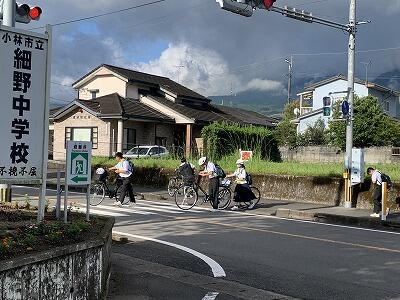 本日、今年度1回目の小中合同あいさつ運動を実施しました。このあいさつ運動は、小林市青少年育成市民会議細野支部の取組の一環として毎年行っているものです。集団登校してくる小学生たちに、大きな声であいさつをする姿が見られました。今後も継続して取り組んでいきたいと考えています。
