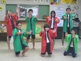 体育大会で、恒例の「細野ソーラン」を踊ります。5・6校時、細野小の6年生も加わって練