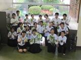校舎内に緑を増やす取組です。「たくさんの緑で学校に潤いを」という呼びかけに応えて22名のボランティアが集まりました。1人が2鉢のお世話をしてくれます。