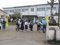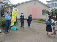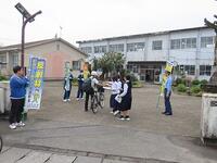 本日生徒の登校時に、交通安全協会の皆様にお越しいただき、交通安全キャンペーンを行いました。反射材やヘルメットの大切さ及び自転車のルールを知る大切さが書かれたチラシを配りました。自分の命は自分で守ることを意識して、安全に過ごしてほしいと思います。交通安全協会の皆様、ありがとうございました。