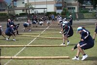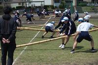 本日の3・4時間目に、3回目の全校体育を行いました。3時間目は全校団技「竹取物語」です。男女別で試合を行い、中央に置いた竹を取り合います。本番さながらの熱の入った勝負が見られました。4時間目は団活動です。どちらの団も応援優勝を目指して頑張っていました。