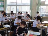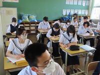 本日1時間目の授業の様子です。1年A組は理科、2年A組は社会、C組は英語、3年A組は数学、B組は理科です。体育大会の練習で疲れもたまっていると思いますが、真剣に学習に取り組んでいます。