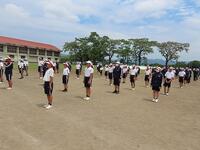 本日の4時間目、5回目の全校体育を行いました。開閉会式の練習と当日の役員の仕事の確認です。午後は団活動を行います。天気が心配ですが、やるべきことをやるだけです。
