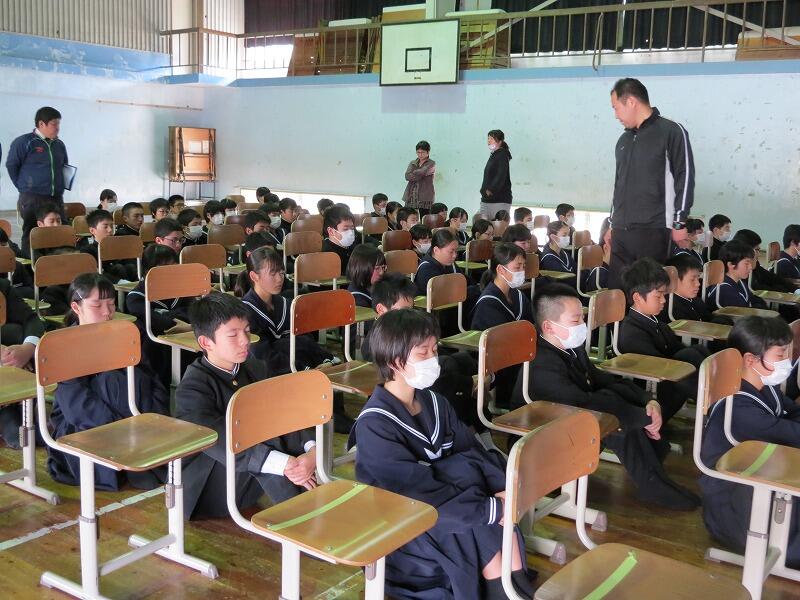 4校時には全校集会が行われ、2学期前半の振り返り・冬休みの過ごし方などのお話がありました。校長先生から「皆で支えあった2学期前半だった。残り3ヶ月も頑張りましょう!」というお話がありました。皆さん、冬休み充実した日々を過ごしてください。年明けに元気な姿に会えることを楽しみにしています。