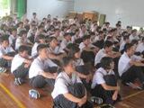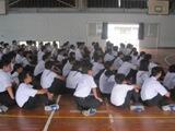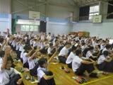 地震を想定しての訓練です。校長の講評の中で、気づき、予測することの大切さと避難所を支える力を持った中学生になろうという話をしました。