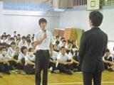 英語。物の名前や地名をローマ字で書きます。 全校集会にも参加しました。