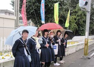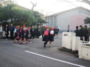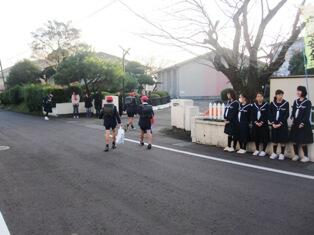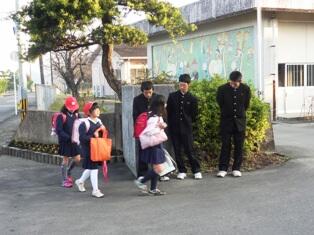最終日の朝、6年生もあいさつ運動に参加しました。この4日間、生徒会役員は交替で小学校に行き、あいさつ運動を行いました。