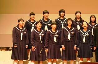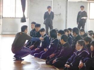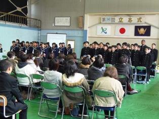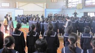その後は西諸音楽大会に学校代表で出場する3年A組の壮行会。全校生徒と6年生の前で合唱を披露しました。