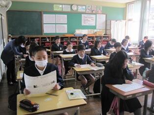 細野小学校の6年生46名が金曜日まで中学校で過ごします。今日はその初日です。
