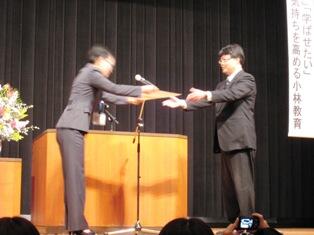 小林税務署の総務課長、轟木様が来校され、入賞した3名に賞状を渡してくださいました。