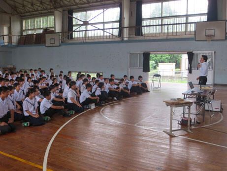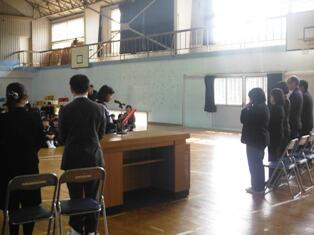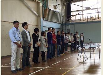 まず、体育館で新任式が行われ4名の先生方の紹介が行われました。