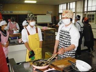 小林西高等学校に行ってきました。調理科の3年生による料理の発表会・試食会です。本校の卒業生二人も一生懸命取り組んでいました。