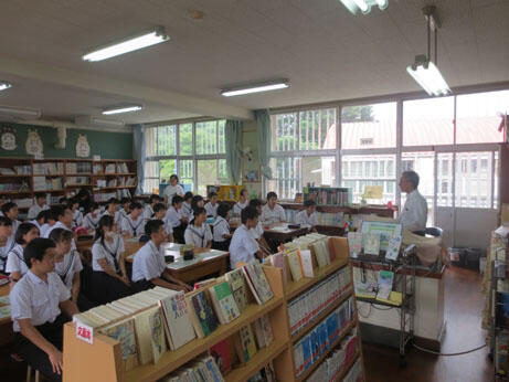 市立図書館で表彰式があり、長田楓香さん(3年)が図書館長賞をいただきました。