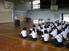 1時間目に全校集会が行われ、1学期後半の取組について校長先生の話がありました。