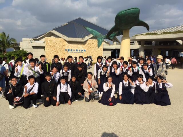 全員無事に班別研修終了し、ホテル到着しました。写真は 美ら海水族館です!