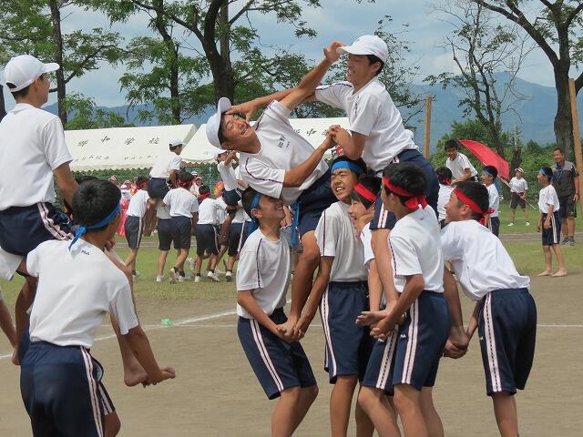 まさしく体育大会日和の晴天でした。その暑さにも負けず、生徒は競技・応援・役員、すべてにおいて全力で頑張っていました。