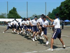17日【日】に第69回体育大会を開催しました。金曜日までの天気予報では、雨の予想でしたが、生徒たちの熱い思いで雨雲を追いやり、当日は雲一つない晴天の中で開催することができました。肥後市長をはじめ多くの来賓の皆様、保護者、地域の方々の熱い声援をいただき、子供たちは、一つ一つの競技、演技に全力で臨んでいました。観覧された方々から、大きな拍手や「感動した」という感想をいただきました。大会の結果は、競技優勝「青団」応援優勝「赤団」とどちらの団も自分たちの良さを発揮し、納得のいく結果でした。競技の一部を紹介します。