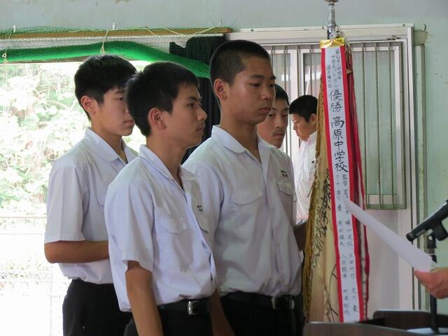 今回は、男子バレーボール部の各種大会の優勝・準優勝(優勝旗を2つとってきてくれました)、男子テニス部の個人戦優勝、中総体水泳競技の優勝の表彰がありました。