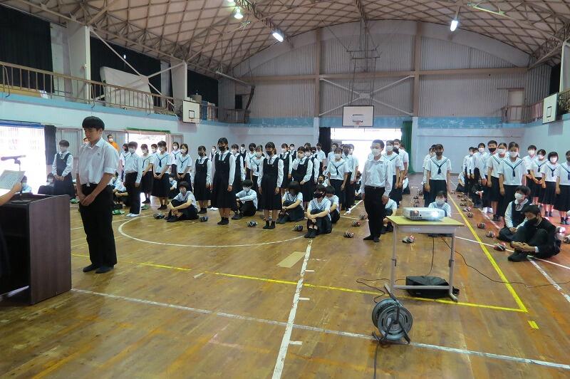 昨年度は感染症対策のために、放送で実施されたため、1年生だけでなく2年生も初めの生徒総会。どのような会なのか、ドキドキ・ワクワクしながら参加した生徒も多かったようです。