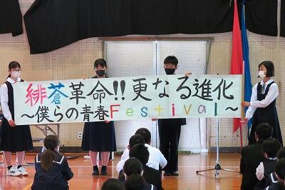 今年度の体育大会スローガンは、『緋蒼(ひそう)革命!! 更なる進化 ~僕らの青春Festival~ 』です。
