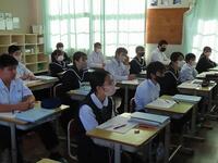 本日の2時間目の授業の様子です。1年生は体育、2年A組は英語、B組は理科、3年生は総合的な学習の時間及び卒業アルバム用個人写真撮影です。集中して授業に取り組んでいます。