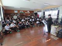 本日の3時間目に、1年生を対象にリコーダー演奏会を行いました。大阪から東京リコーダー協会の増永 奏さんをお招きしての講習会でした。増永氏さんは6種類のリコーダー(クライネソプラニーノ・ソプラニーノ・ソプラノ・アルト・テノール・バス)を準備し、それぞれのリコーダーの特徴を生かした素晴らしい演奏を披露してくださいました。生徒たちも熱心に聴き入っていました。また、アルトリコーダーの吹き方なども生徒に教えていただき充実した時間となりました。本当にありがとうございました。