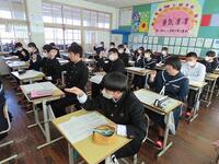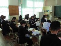 登校後の8時から20分間、朝自習に取り組んでいます。1・2年生も黙々と取り組んでいますが、3年生はより真剣に取り組む様子が見られ、緊張感すら漂っています。生徒の皆さん、「学問に王道なし」です。日々の取組を大切にしてください。