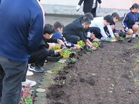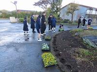 本日の1時間目に、2年生が技術の栽培の時間を使って花を植えました。雨上がりで気温も低く、寒い中での活動でしたが、友達と話をしながら楽しそうに植える姿が見られました。これで学校の環境がますますよくなります。
