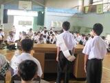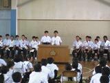 細野区敬老会と細野小の運動会でホソノソーランを披露するメンバーを全校集会で紹介しました。実行委員長の齋藤俊介くんが「学校の代表としてしっかり踊ってきます」とあいさつし、全校生徒が大きな拍手で激励しました。