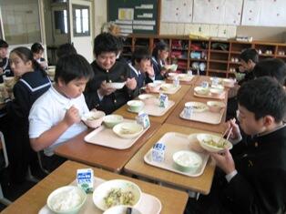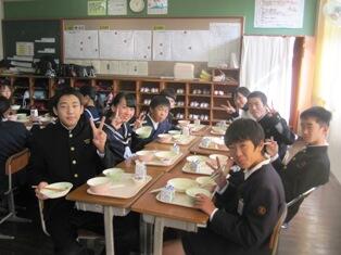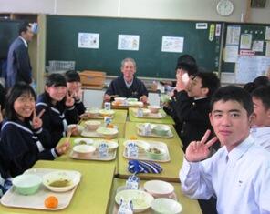 畜産農家の金崎様、東園様、荒武様と教育委員会の指宿様が来校され、一緒に給食を食べました。メニューは宮崎牛の牛丼「こすモ~丼」。市内全部の小中学校の児童生徒に宮崎牛を味わってもらおうという企画です。牛肉は市内の畜産農家さんたちが提供してくださいました。とても柔らかく、ゴボウといっしょに甘辛く味付けがしてあってとても美味しかったです。