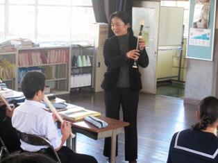大田原先生(音楽)の勤務が今週いっぱいになりました。集会で生徒会長の田中大和くんがお礼の言葉を述べ、副会長の押領司尚美さんが花束を贈りました。音楽や特別支援学級の授業のみならず、合唱コンクールに向けての指導で大変お世話になりました。