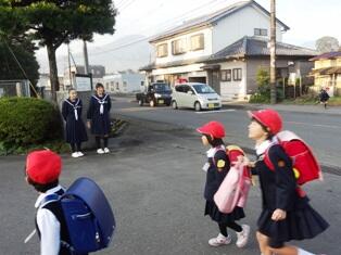 最終日の朝、6年生もあいさつ運動に参加しました。この4日間、生徒会役員は交替で小学校に行き、あいさつ運動を行いました。