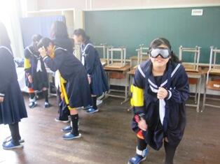 小林市社会福祉協議会の皆様のご指導の下、車いす体験と高齢者疑似体験を行いました。