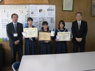 小林税務署の総務課長、轟木様が来校され、入賞した3名に賞状を渡してくださいました。