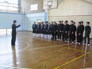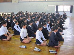 その後は西諸音楽大会に学校代表で出場する3年A組の壮行会。全校生徒と6年生の前で合唱を披露しました。