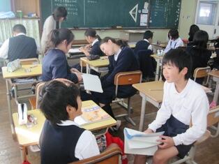 細野小学校の6年生46名が金曜日まで中学校で過ごします。今日はその初日です。