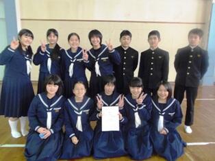 〇 全国いじめ問題子供サミットが1月24日(土)、文部科学省で行われます。テーマは「SNSでのいじめを含め、いじめの問題にどう立ち向かうか」。前生徒会長の中薗尚樹くん(3年)が、本校の取組を持って臨み、全国の中学生と交流します。本校生徒会は平成25年5月に生徒総会で「いじめ追放宣言」を決議し、その後、看板を設置。毎月、いじめについてのアンケートを全校で実施しています。いじめ追放宣言.pdf