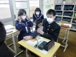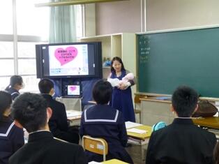 1年生の授業です。4月に開校する小林看護医療専門学校のお二人の先生に看護師の仕事についてお話をしていただきました。血圧も測りましたよ。