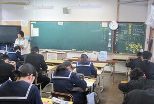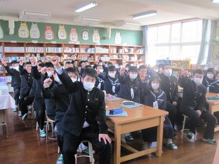 6校時に図書室で行いました。校長の話は2つ。自分と学校の良い所をアピールすることと「おまじない」。最後に気勢を上げました。受験生の健闘を祈ります。