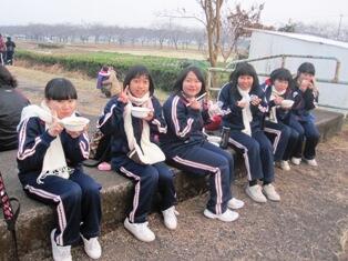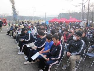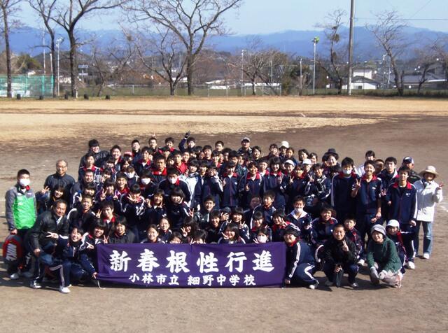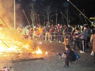 交通整理や豚汁づくり等で根性行進を支えていただいた保護者の皆様、どんど焼きを企画・運営された細野地区青年団と地域の皆様、ありがとうございました。