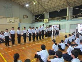 本日(6/3)、西諸地区中体連総合体育大会の壮行会を開きました。この大会は、県、九州、全国大会へつながり、運動系の部活動生にとっては、最大のイベントになります。