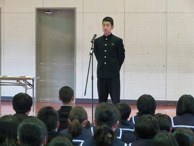 生徒も先生も期待と不安の中のスタートだったと思いますが、すばらしい細野中生徒のあいさつと態度で新任式を終え、生徒にも職員にも「不安」がなくなり、期待感が大きくふくらんだといった感じです!