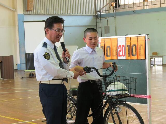 自転車安全利用五則や自転車点検の大切さ等の話しをしていただきました。
