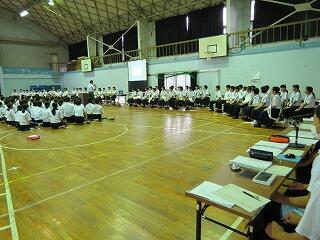 9月25日(水)に地区秋季大会・県大会水泳競技の壮行会と表彰がありました。