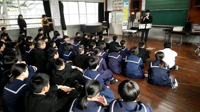 17日(火)、日本リコーダー協会の福森さんに来校していただき、リコーダーの鑑賞教室を2年生限定で行いました。