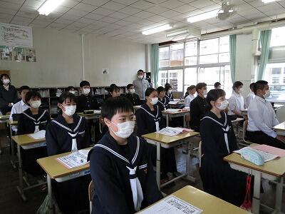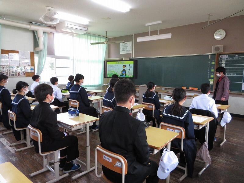 例年であれば、集会の形で行いますが、今年度は放送による各学級での指導となりました。