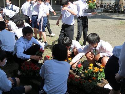 先週5月20日に、各学年の花壇や学校の花壇に花の苗を植えました。
