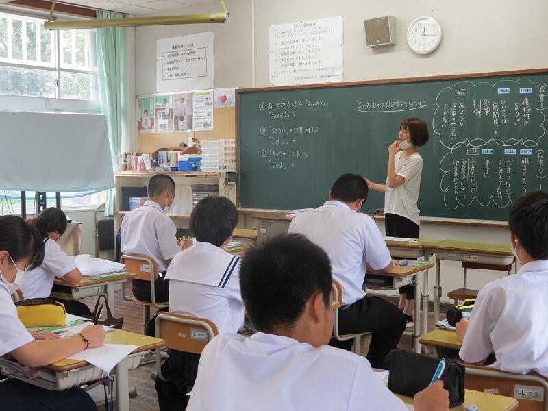 2年生は「言い方ひとつで気持ちもなごむ」という資料を使って、ことばを通した人間関係について考えました。